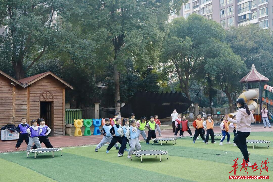 “平衡能力”同课异构与联合教研是本次活动的核心环节。在星城世家幼儿园保教主任聂文俊主持下,参会教师观摩了育才双新小学黄寒执教一年级体育课《趣味蹦床体验与组合练习》及星城世家幼儿园夏行行组织大班健康活动《勇敢小兵》。两节课学段不同、形式各异,但均聚焦平衡能力培养,体现幼小体能教育的延续性与进阶性。