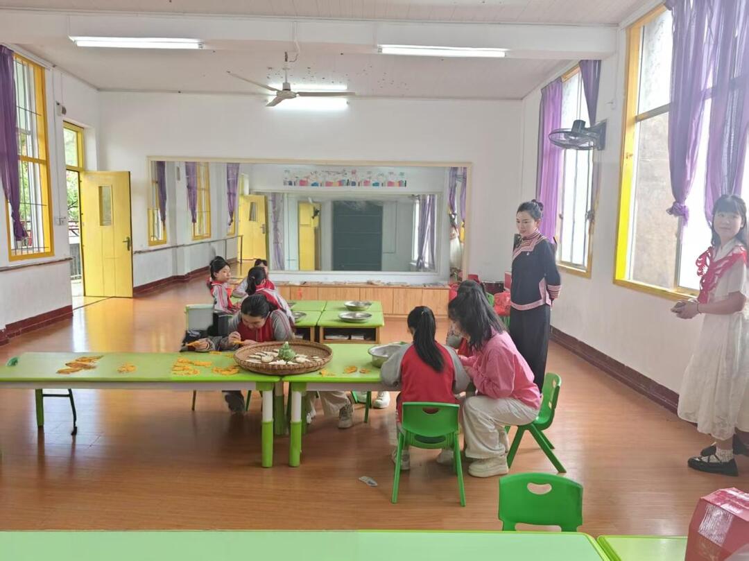 学校利用课后服务时间,开设了剪纸、雕花蜜饯制作、苗族歌鼟、织锦入门等特色课程。在剪纸课堂上,孩子们在老师的指导下学习基本技法,从简单的对称图案到复杂的窗花设计,剪刀在彩纸间翻飞,一幅幅稚拙而生动的作品从孩子们手中诞生。