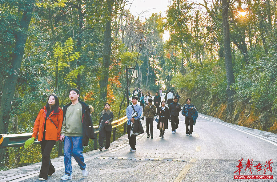 12月29日,市民、游客在长沙岳麓山景区参观。冬日暖阳下,大家走进苍松翠柏间,享受美好时光。