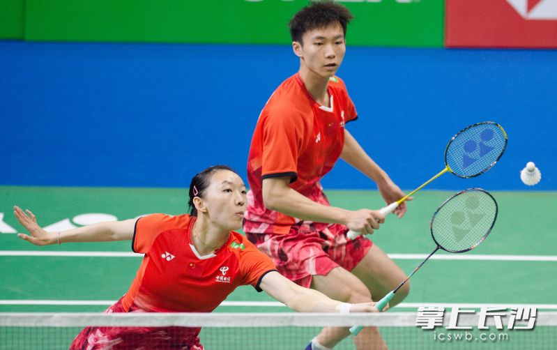 长沙妹子魏雅欣与国家队混双搭档蒋振邦一同效力于青岛仁洲队。图为两人在2025年印度羽毛球公开赛夺得混双项目冠军。 新华社发