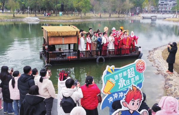 1月1日,宁远县九嶷山景区南风集,游人在参加汉服巡游。当天是2026年的第一天,人们通过多种多样的方式,庆祝新年到来。 黄春涛 李文 摄影报道(湖南图片库)