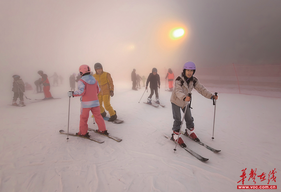 1月1日,浏阳大围山森林冰雪季暨冬季森林科普活动正式启动,游客在体验滑雪。熊剑 摄(湖南图片库)