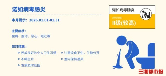 据介绍,本月湖南需重点关注诺如病毒肠炎与流行性感冒等急性呼吸道传染病,其中诺如病毒感染风险尤为突出。随着寒冷季节持续,湖南疾控提醒公众需强化个人卫生,注意饮食安全,并做好疫苗接种等综合防护措施,以应对冬季高发的肠道与呼吸道疾病风险。