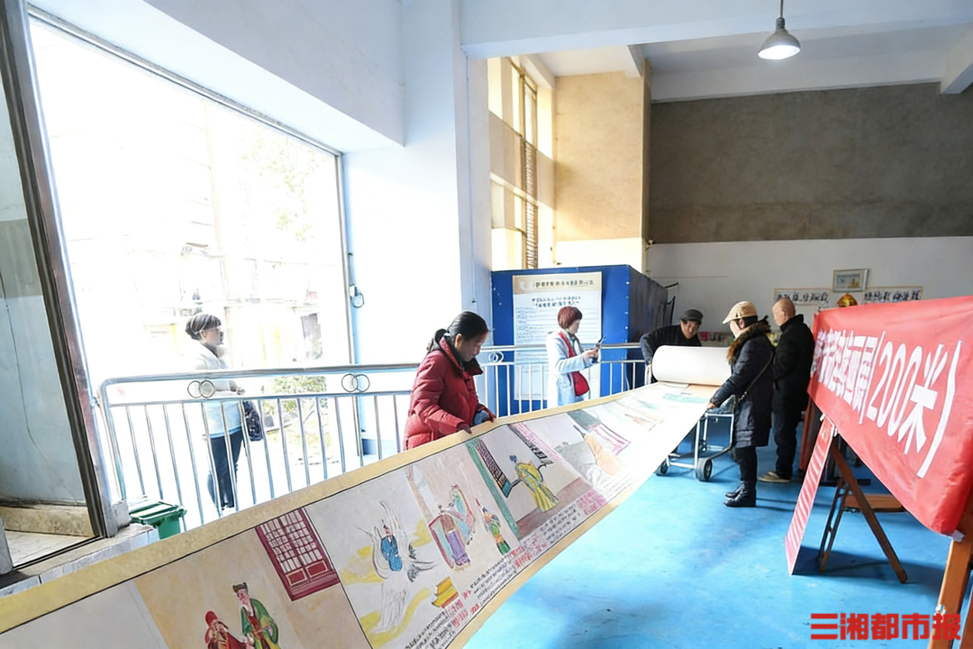1月9日,湘潭市老年大学,76岁退休教师张重兴的画室内墨香依旧。桌案上,那幅重达29公斤、长达200米的《唐宋诗词连续画》刚刚结束元旦期间的特展。