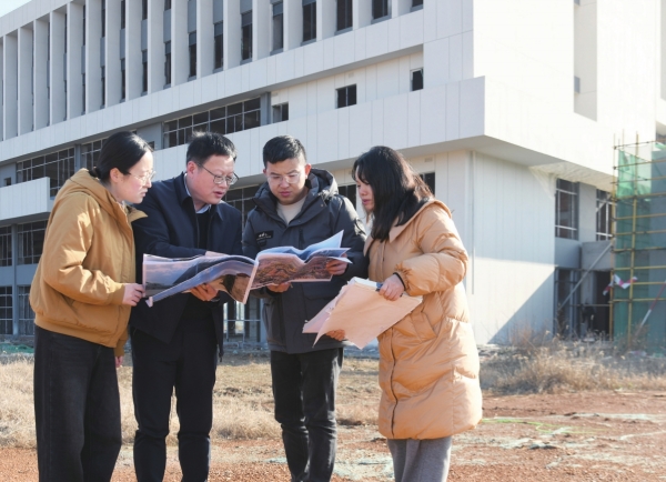 徐乐(左二)带领审计组对工程项目建设情况开展现场核对。邱实 摄