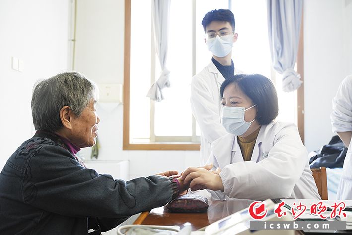 在湖南中医药大学第二附属医院(湖南省中医院),心血管内科刘春华教授正在为一名80岁“无条件加专家号”的老人做细致问诊和触诊。 长沙晚报全媒体记者 林暘 摄