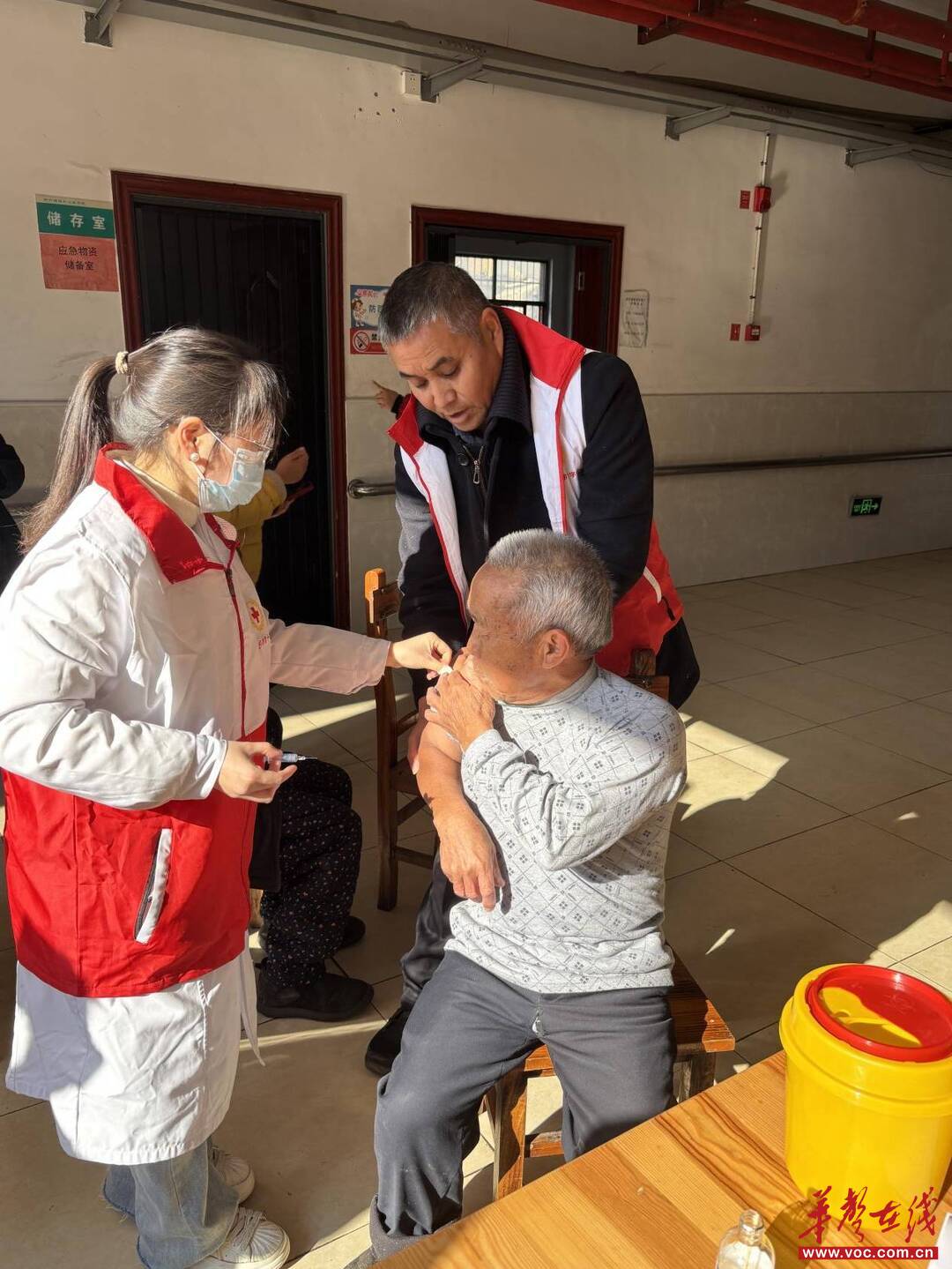 在接种现场,医护人员耐心细致地为每位老人测量血压、询问近期身体状况,严格排查接种禁忌症,并结合既往病史与当前健康情况开展专业评估。对行动不便的老人,医护人员主动上前搀扶,提供“一对一”全程陪同服务;对听力、视力不佳的老人,工作人员俯身倾听、轻声讲解,详细告知疫苗接种流程、注意事项及可能出现的不良反应,在充分获得知情同意后,严格按照“三查七对一验证”规范完成接种操作,确保安全、有序、高效。