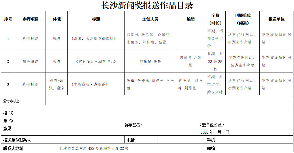 根据《2025年度长沙新闻奖评选工作通知》,现推荐我单位3件作品参评2025年度长沙新闻奖,现予以公示,接受群众评议监督。