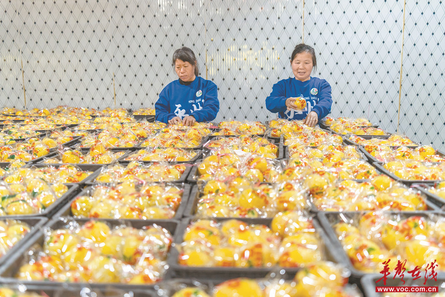 1月13日,永州市冷水滩区上岭桥镇三大桥村,村民在打包黄金贡柚。近年来,当地深挖生态资源潜力,通过“合作社+基地+农户”的模式,积极推动产业绿色化、规模化、品牌化发展,带动农户增收。