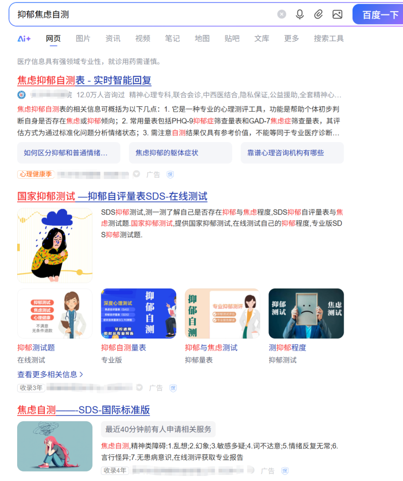 事实上,小林的困扰并非个例。如今打开社交平台,“抑郁自测”“情绪状态评估”等链接随处可见,这些测验大多只需回答十几道关于情绪、睡眠、食欲的选择题,短短几分钟就能生成“轻度”“中度”“重度”的抑郁评估结果。操作简单、反馈直观的特点,让不少正被情绪困扰的人忍不住尝试。
