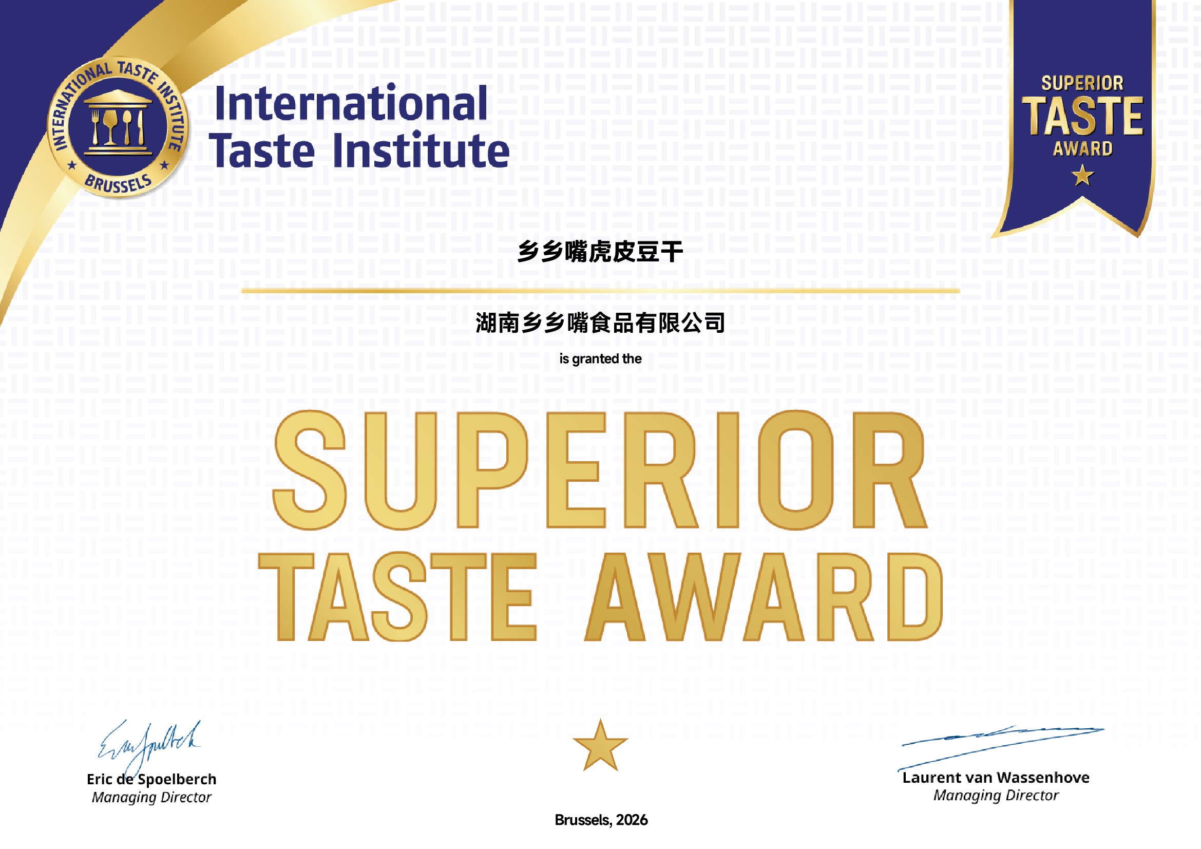 作为农业产业化国家重点龙头企业,乡乡嘴同时也是《非发酵豆制品》国家标准制定单位之一,也是品牌硬实力与行业影响力的双重印证。值得一提的是,就在本月初,乡乡嘴虎皮豆干还斩获被誉为“食品界奥斯卡”的国际美味奖,实现权威认证与国际口碑的同步突破。