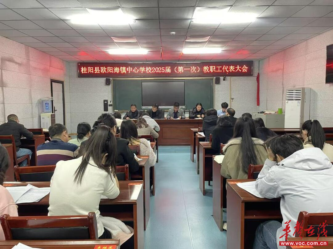 华声在线1月19日讯(通讯员 付鑫)冬阳暖照,初心如磐。1月15日,桂阳县欧阳海镇中心学校2025届(第一次)教职工代表大会在学校录播室召开。全体教职工代表齐聚一堂,以高度的责任感和使命感共商学校发展大计,为推进学校民主管理、规范办学秩序、提升教育质量注入强劲动力。