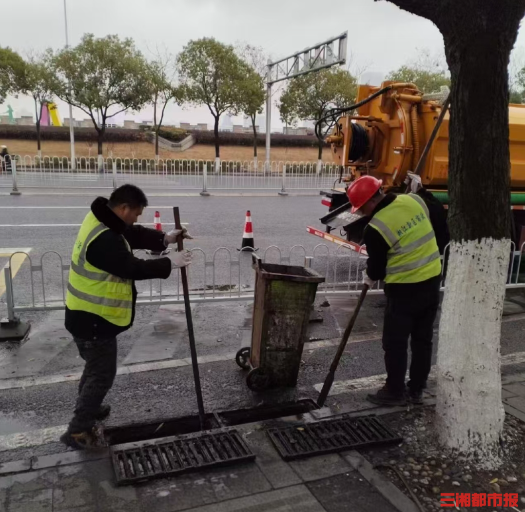 在应急处置方面,湘江新区行政执法局市政设施维护中心已提前制定专项应急预案,严格执行24小时值班和领导带班制度。同时,组建了一支300余人的应急队伍,全面加强路面巡查,重点对潇湘中路、梅溪湖东路、西二环、金星北路等关键路段雨水管网进行排查,确保排水畅通,最大限度降低道路结冰风险。