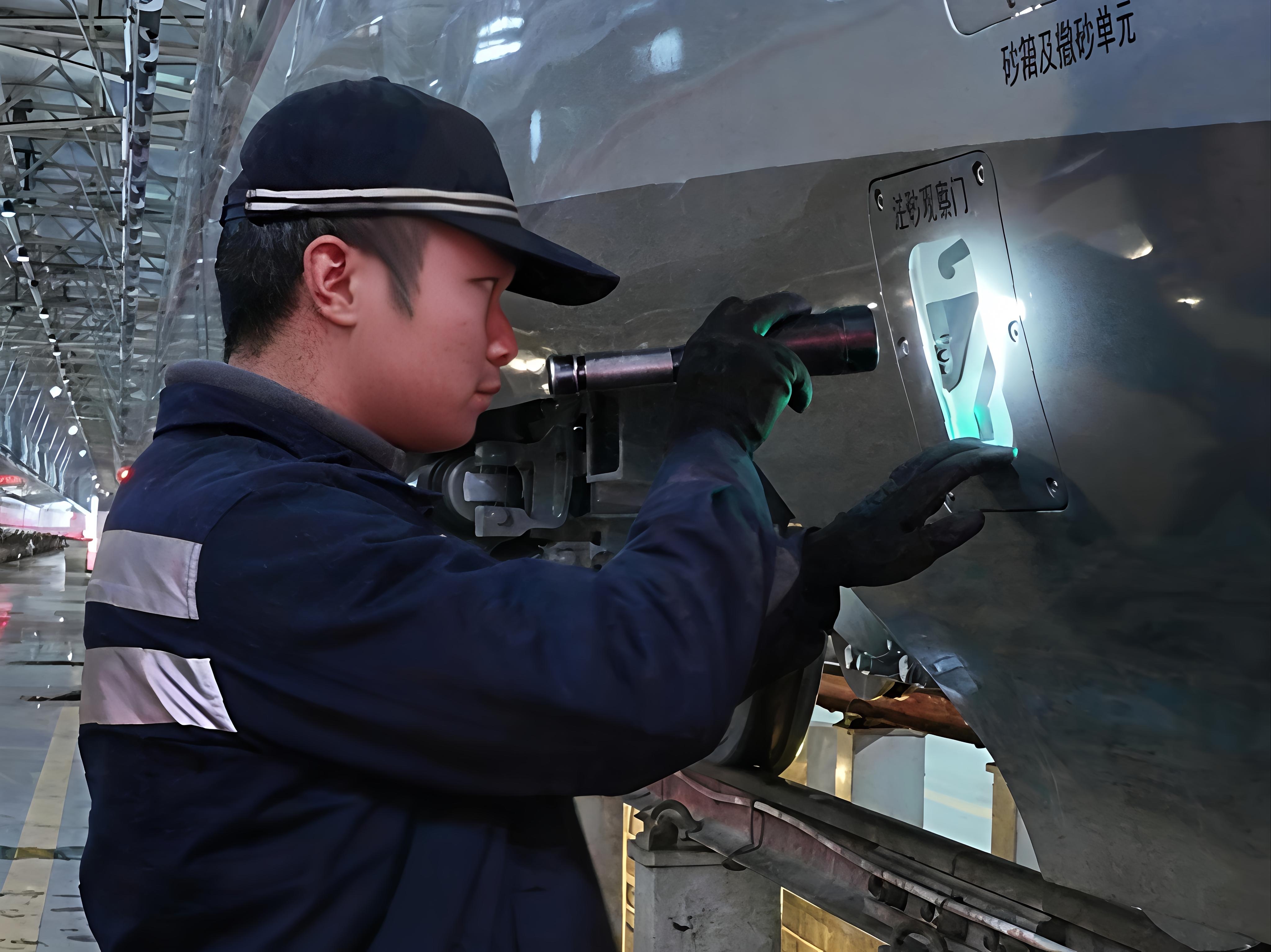 (机械师正在进行两侧裙板检查作业。通讯员供图)