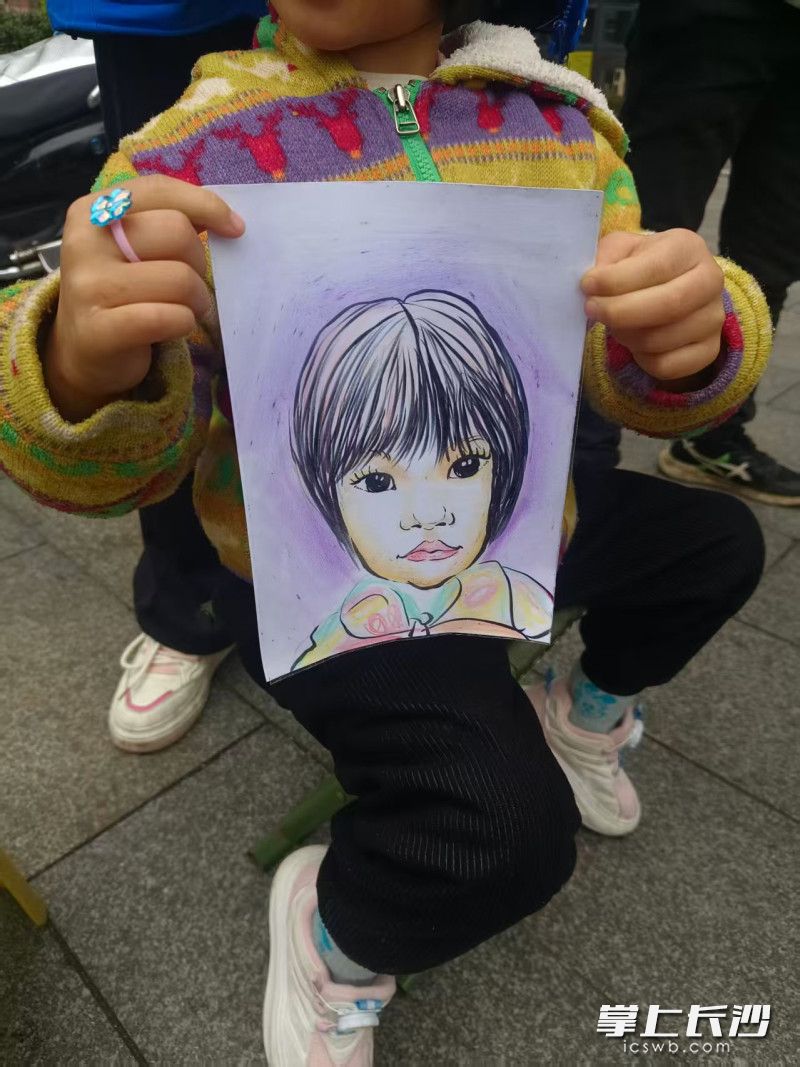 “这幅卡通人像画我只收5元钱。”易兴林表示,“钱不钱的无所谓,主要是兴趣。”