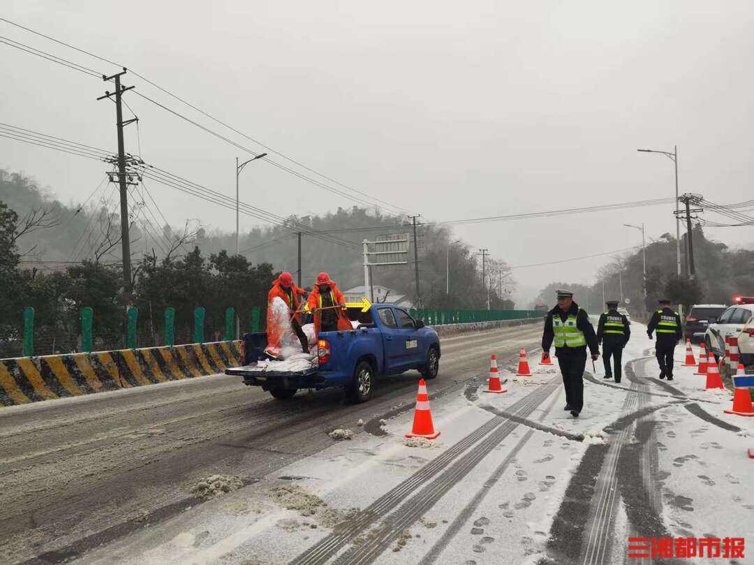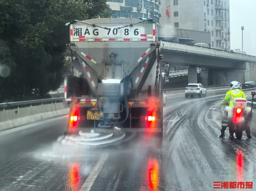 华声在线1月20日讯(文/视频 全媒体记者 虢灿)冰雪天气出行请留意,目前长沙已有多处路段结冰,部分路段交通管制。1月19日夜间起,长沙交管部门积极迎战风雪天气,提前在桥梁衔接处等易结冰点段铺设麻袋,撒盐、铲雪、扫积水,防止车辆打滑失控。在重点路段新增宣传标语,增设警示标志。
