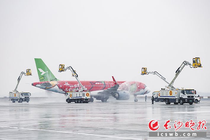 记者体验长沙机场“凌晨行动”,18台除冰车全部投入作业,为旅客铺就“温暖出行路”