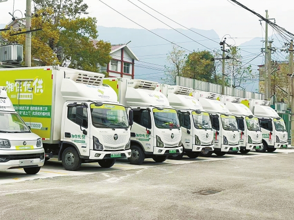 印着湖南供销“流动供销”统一标识的新能源冷链配送车。通讯员 摄