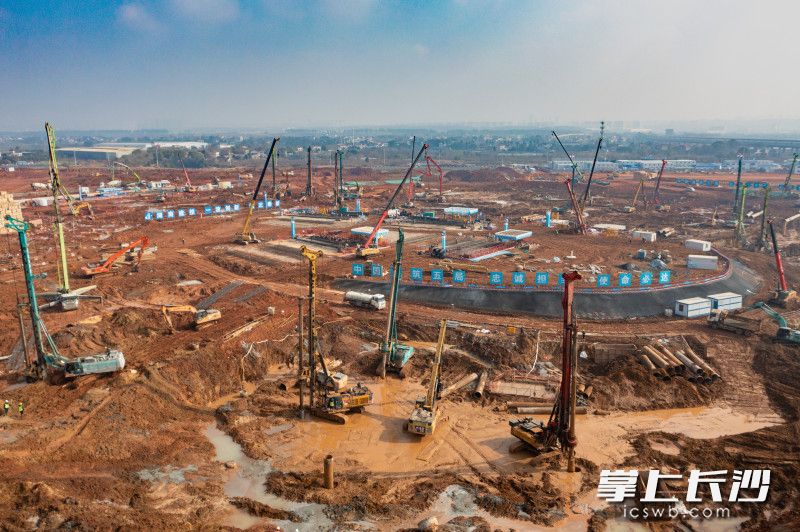 1月23日上午,湘江两岸阳光明媚。记者在长沙奥体中心建设现场看到,百余台“钢铁巨人”忙而有序地推进着桩基工程,上千名建设者奋战在施工一线,为这座未来的“体育强省新地标”筑牢根基。从高空俯瞰,主体育场的圆形地基已初具雏形。