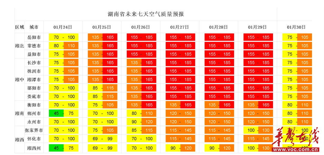 27至29日,北风2-3级,污染传输叠加本地污染积累影响,预计湘中、湘北以轻到中度污染为主,湘西、湘南良至轻度污染;