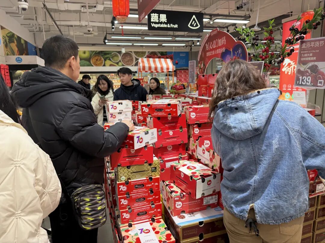 (盒马店内选购车厘子的消费者。侃财君 摄)