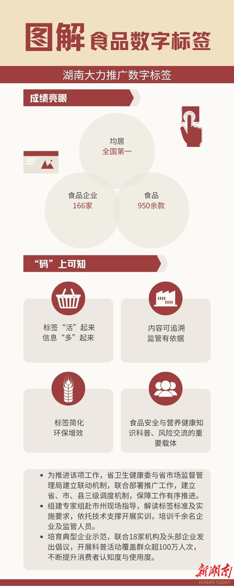 华声在线1月25日讯(全媒体记者 李成辉)记者今天从省食安办了解到,我省构建“政策联动+技术赋能+宣传引导”的食品数字标签推广应用工作体系,筑牢食品安全防线,赋能食品产业高质量发展。截至目前,全省累计已有166家食品企业的950余款食品加入了数字标签的应用,注册企业数和生成标签量均居全国首位。