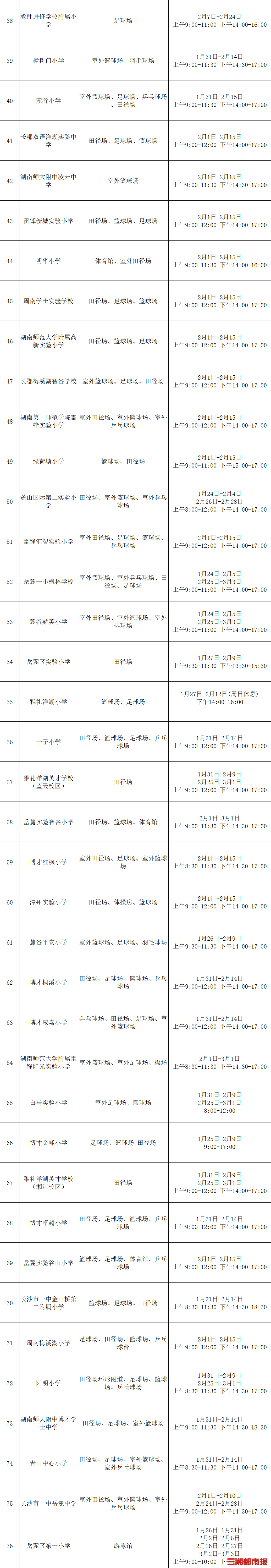 华声在线1月27日讯(全媒体见习记者 宋科铖)1月27日,记者获悉,湘江新区为进一步浓厚“全民健身”氛围,更好地满足群众就近健身需求,寒假期间,新区将有76所中小学校的体育场馆免费对外开放。
