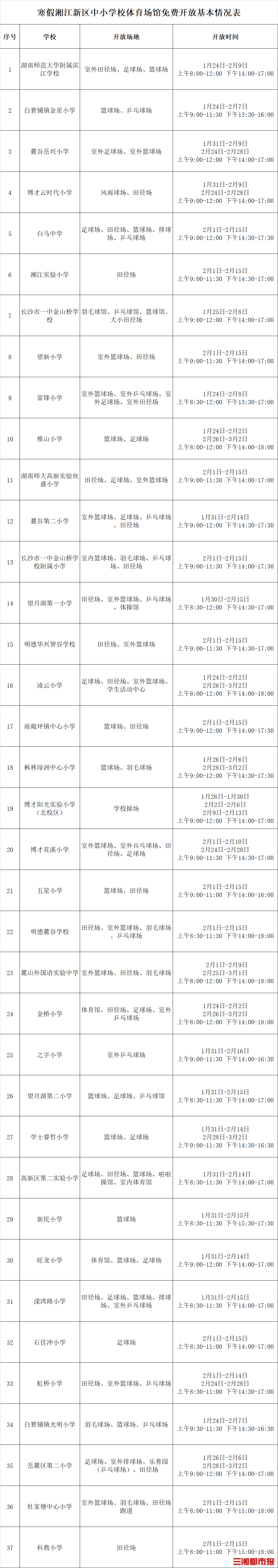 此次新区免费开放的中小学校体育场馆涵盖田径场、足球场、篮球场、游泳馆等多种类别,开放时间和开放场馆根据各学校实际情况略有不同。居民可根据自身需求就近就便选择相关学校场馆前往锻炼。