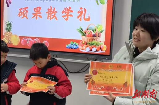 近期,在长沙市天心区青园实验小学,周艳老师亲手用毛笔为班上39个孩子书写了一份“真心的礼物”。在期末表彰的“硕果散学礼”上,周艳一改传统的“打印奖状”,用娟娟秀楷书写每一位孩子的“闪光点”。