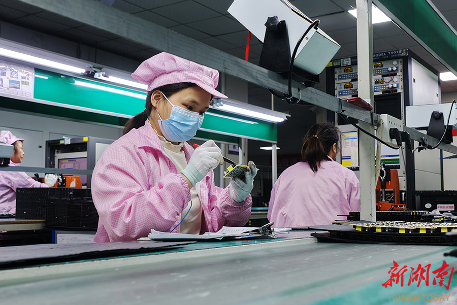 1月27日,嘉禾县高新区企业车间,工人正加紧生产电子配件。春节前夕,园区各企业开足马力赶制订单,生产一线呈现繁忙景象。 黄春涛 摄(湖南图片库)