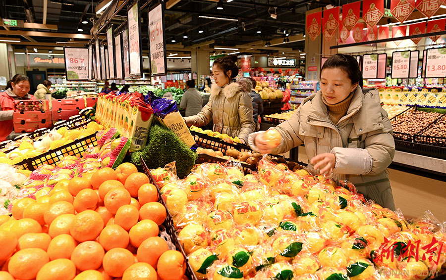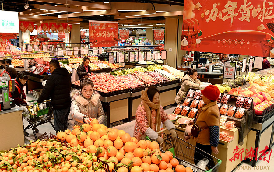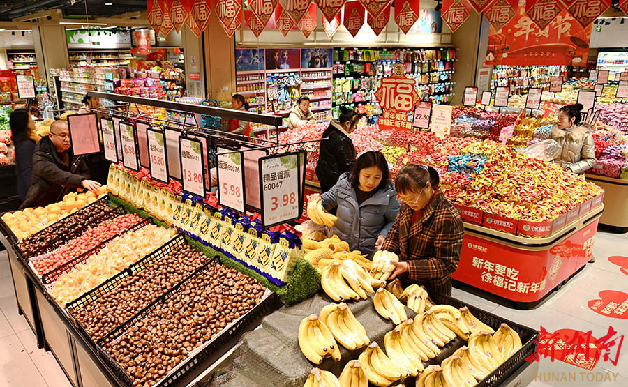 1月27日,洞口县花古街道新家悦超市,市民在选购年货。春节前夕,该县多措并举保障市场供应,确保节日商品品类丰富、货源充足、价格稳定。 滕治中 摄(湖南图片库)