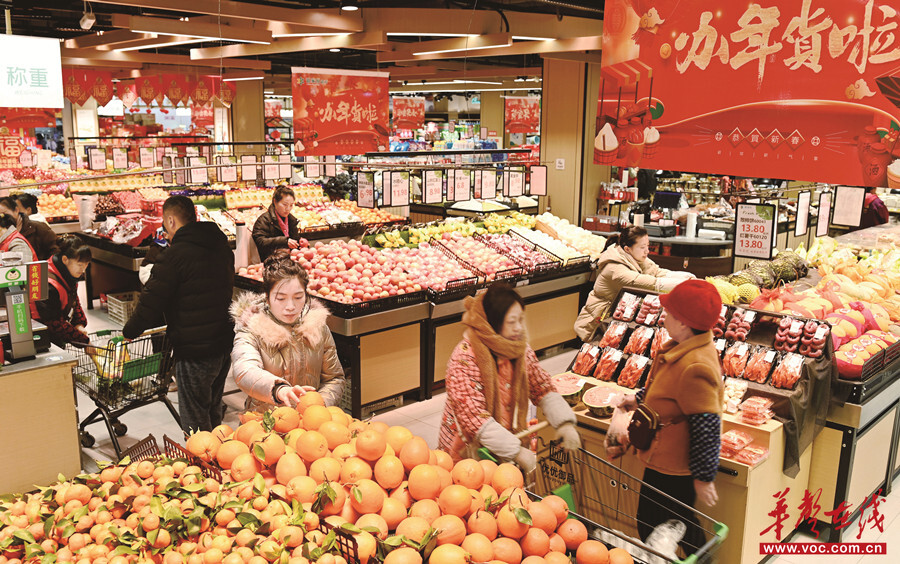 1月27日,洞口县花古街道新家悦超市,市民在选购年货。