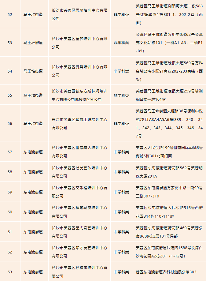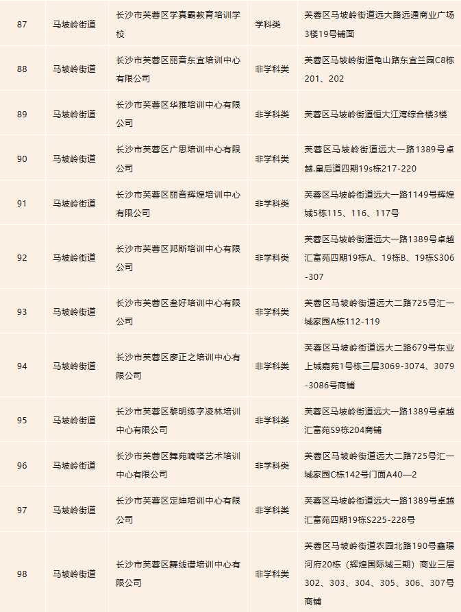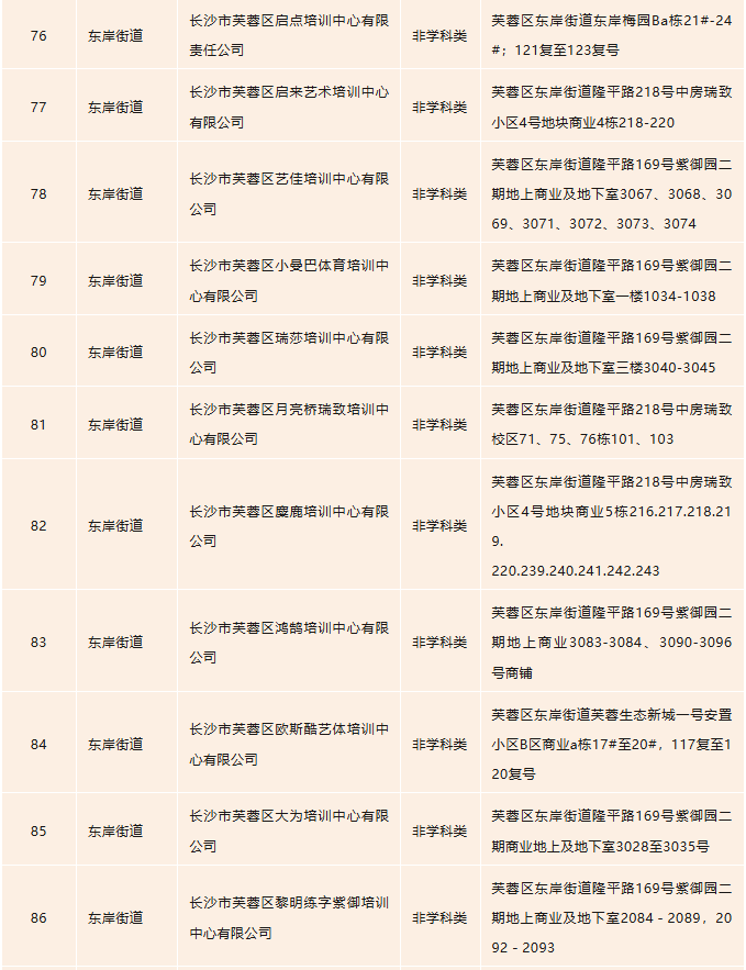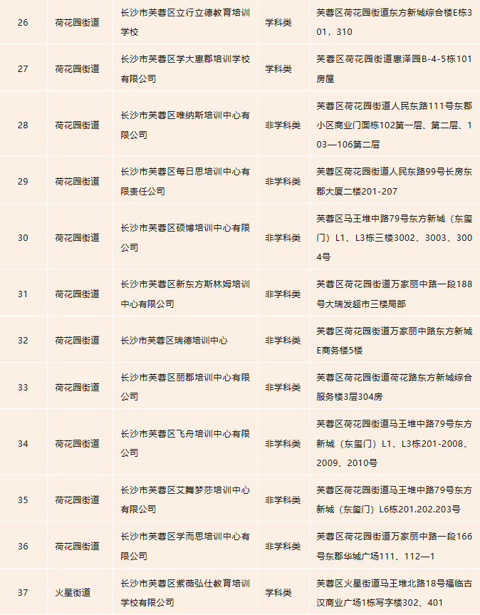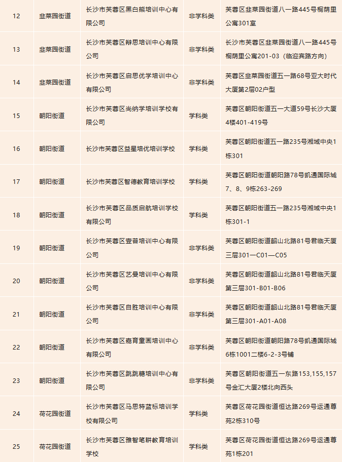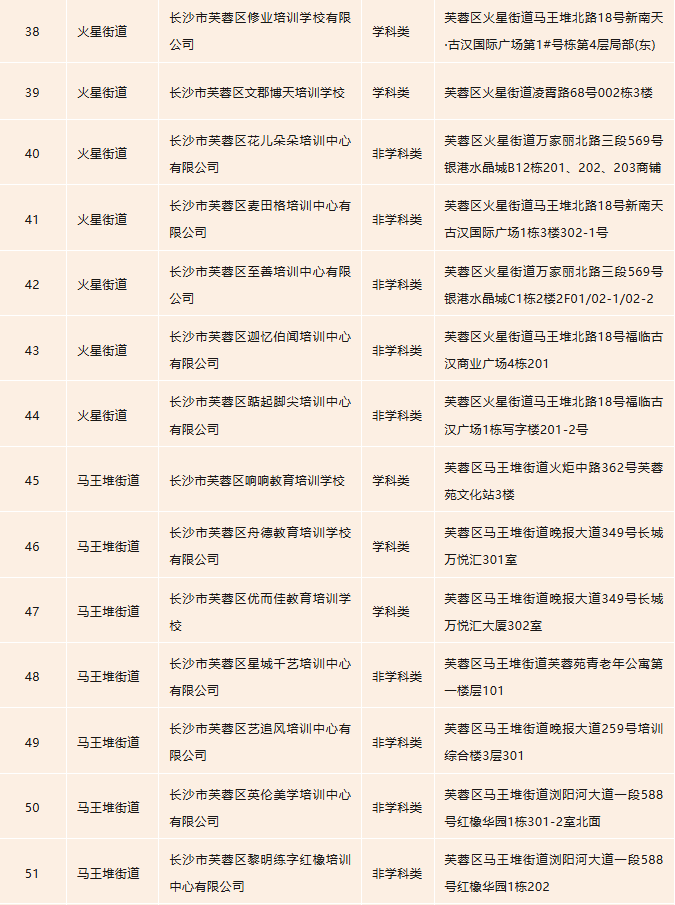 开福区校外培训机构白名单