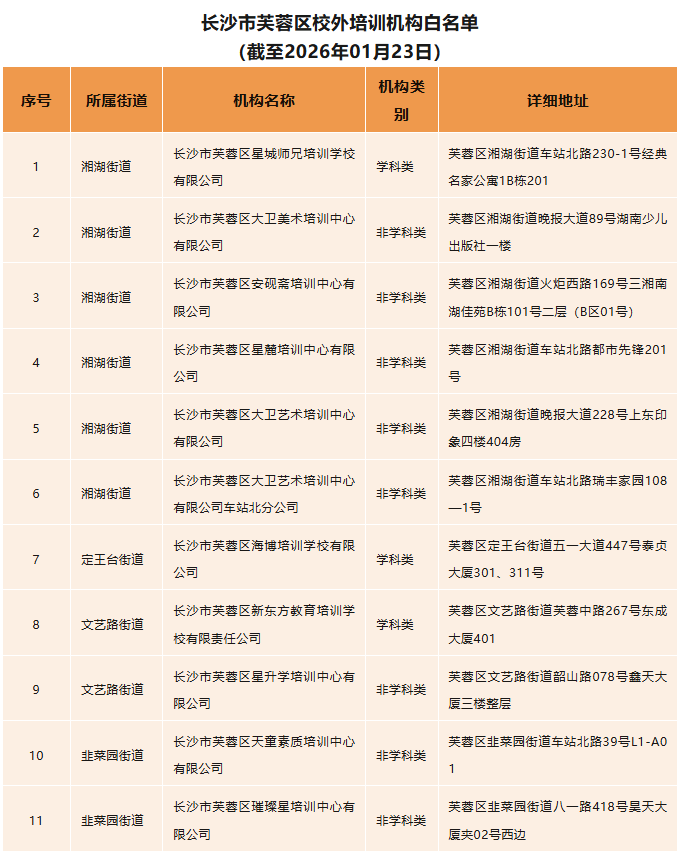 湖南湘江新区2026年学科类、非学科类校外培训机构白名单(第一期)