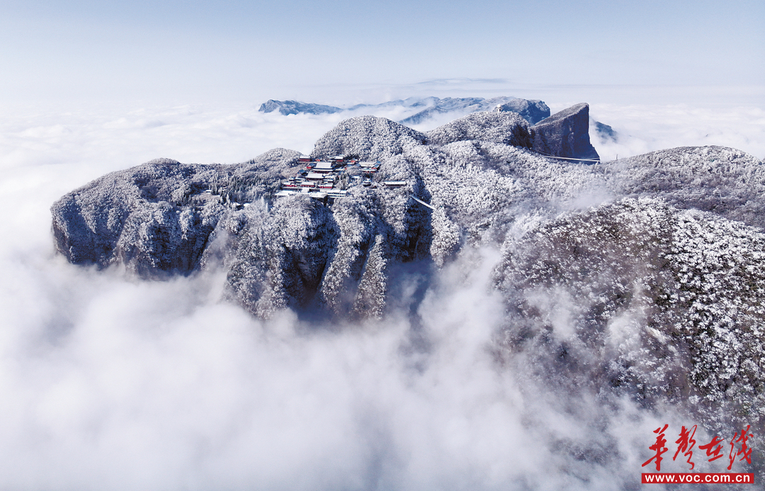 1月31日,张家界天门山雪后初霁。千米山巅银装素裹,万顷云海奔涌翻卷,雾凇云海奇观吸引众多游客驻足打卡。