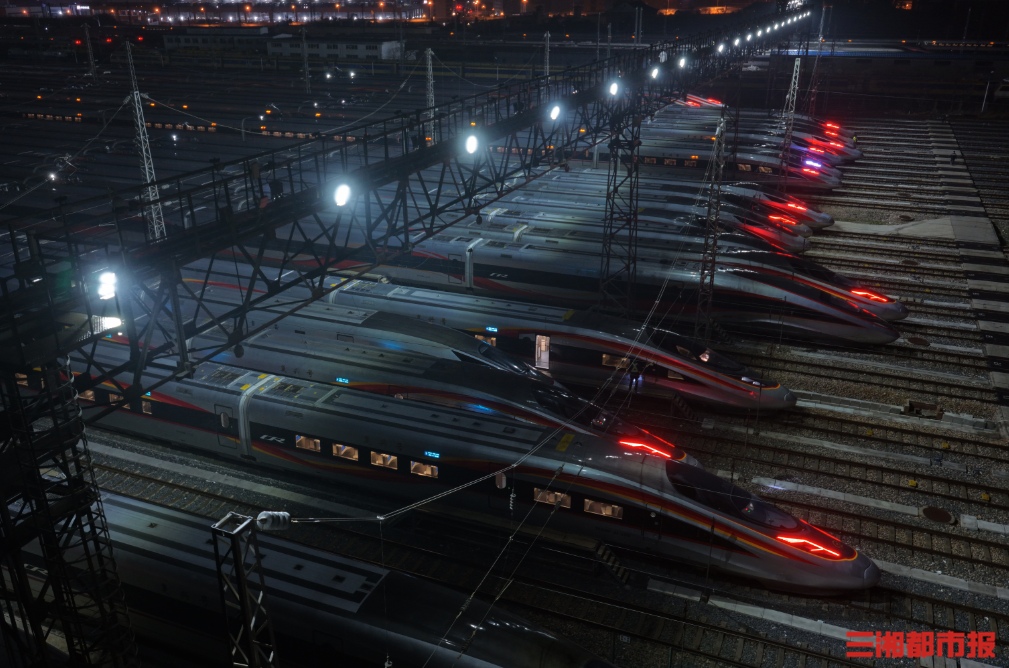 华声在线2月1日讯(文/视频 全媒体记者 李致远 通讯员 黄俊人)2026年铁路春运将于2月2日正式启动,为期40天。2月1日,在广铁集团长沙车辆段长沙动车运用所内,百组动车组犹如“陆地航母”般集结完毕,整装待发,全面进入春运保障状态。