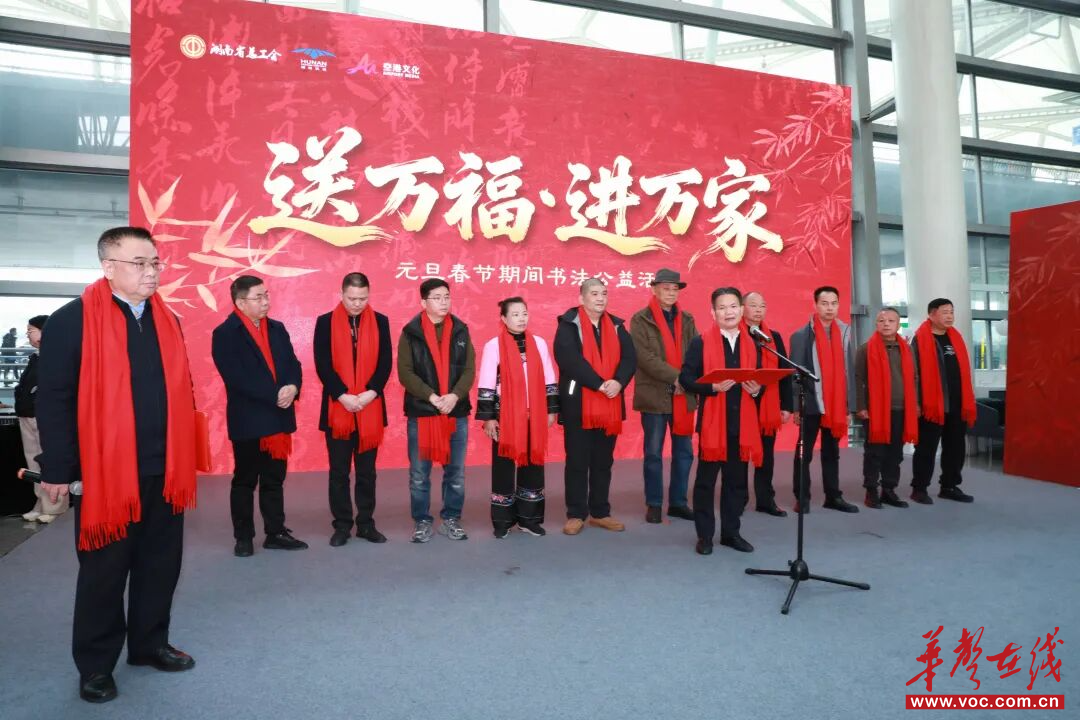 华声在线2月4日讯(全媒体记者 赵瞳铱 通讯员 陈子菲 实习生 石卓雅)2月3日下午,长沙黄花机场T2航站楼内纸墨飘香、年味渐浓。湖南工会2026年元旦春节期间“送万福、进万家”书法公益活动在此启动。十位书法家在主会场挥毫,为劳动模范、工匠代表、新就业形态劳动者和一线职工书写春联、赠送“福”字,以笔墨传递新春祝愿。