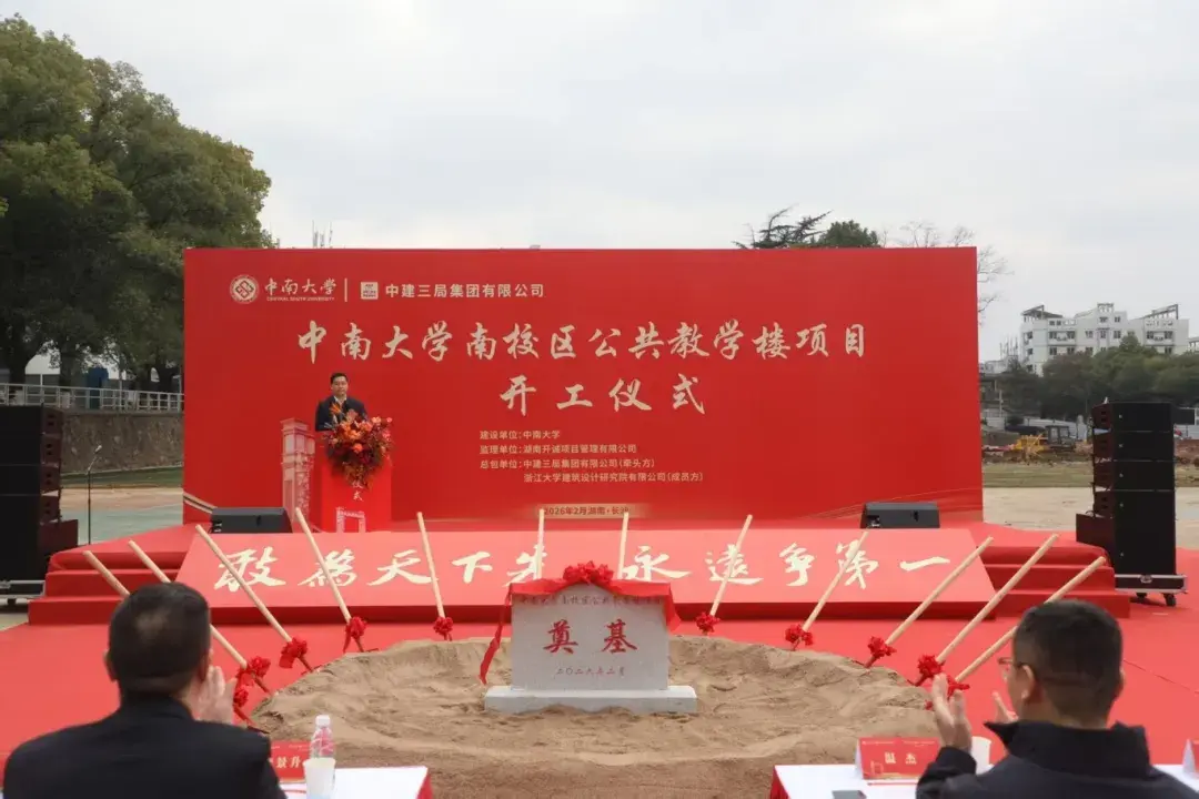 华声在线2月4日讯(全媒体见习记者 沈可心 通讯员 邹佳盈 常敬钰)近日,中南大学潇湘校区学生宿舍一期、二期项目与麓南校区公共教学楼项目分别举行开工仪式。此两项工程将进一步完善校区功能布局,缓解长期存在的跨校区“钟摆式”通勤压力,改善师生教学与生活环境,为学校“双一流”学科建设与育人模式创新提供坚实的硬件支撑。
