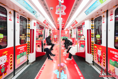 作为长沙人流量最大的地铁线路,2号线串联五一广场、万家丽广场、长沙火车站等核心枢纽,日均客流量超百万人次,节假日峰值更是持续攀升。袁谷农场以车厢广告形式强势入驻,红金交织的品牌视觉与“耐盐碱大米认准袁谷”的核心主张形成沉浸式包围,实现了对商务人士、家庭消费者、外来游客的全维度覆盖。