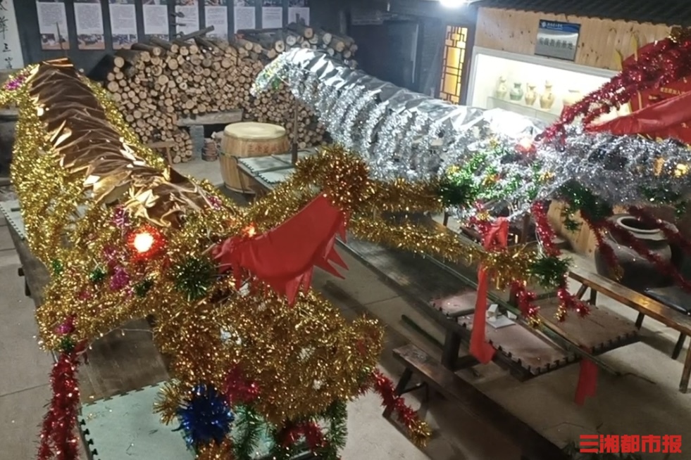 “舞动它光靠蛮力不行。”谢宇告诉记者,表演时两名壮汉需默契配合,通过提、扭、摆、跃等动作,让金银双虾宛若从洞庭碧波中跃出。这一独特艺术形式,源自三峰窑的生产生活,当地曾是知名窑址,冬日雨雪无法晒陶坯时,手艺人便制作龙、虾、狮等道具,祈愿来年风调雨顺、窑火兴旺。