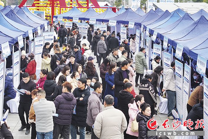 2月5日,望城区2026年春风行动专场招聘会在月亮岛天街举行,求职者正在寻找自己心仪的工作岗位。 长沙晚报全媒体记者 邹麟 摄