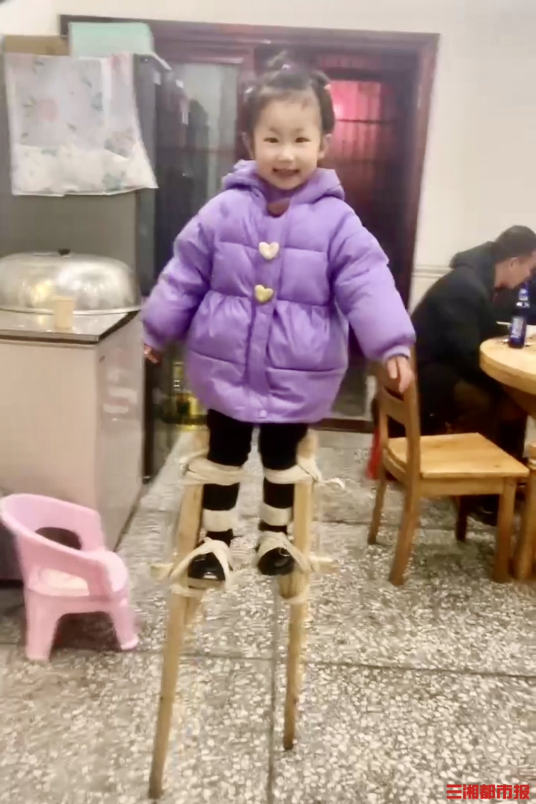 3岁萌娃主动请缨,高跷表演零摔倒