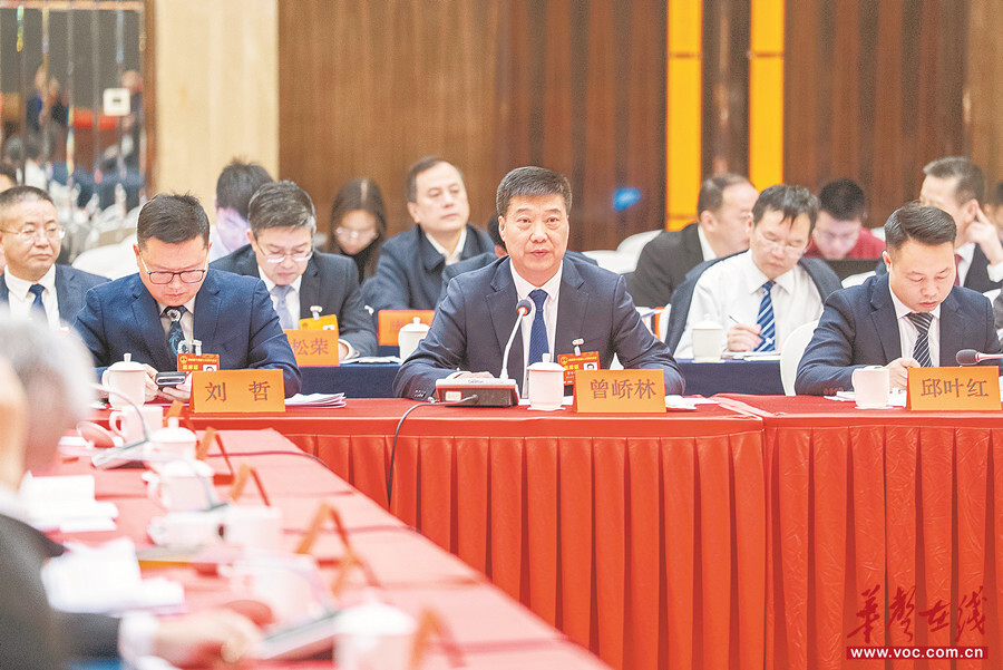 2月4日,邵阳市代表团曾峤林代表围绕生态养殖和绿色发展建言。