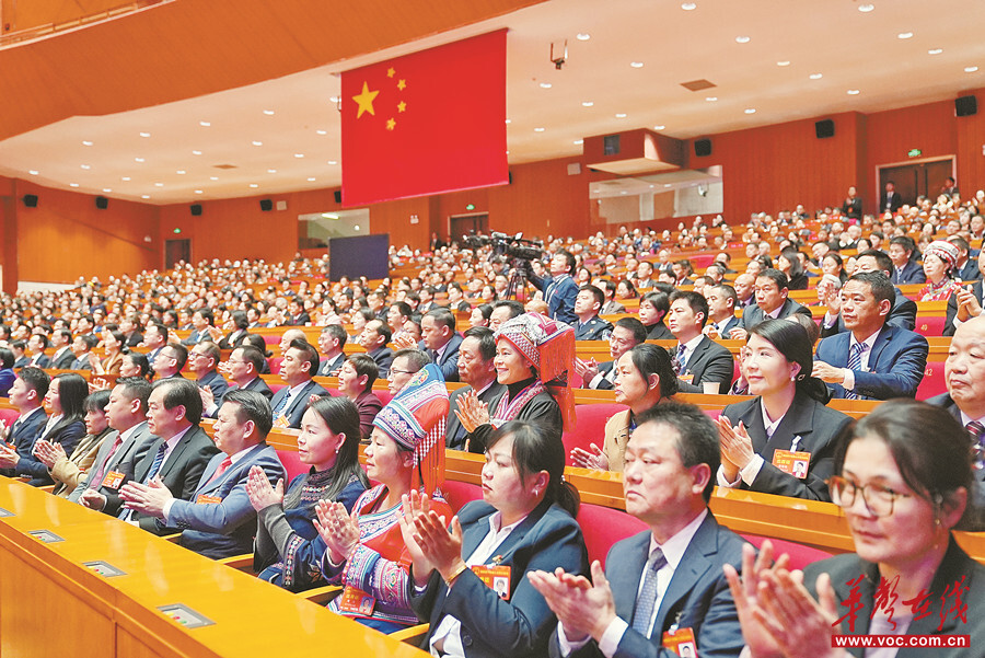 2月7日上午,湖南省第十四届人民代表大会第四次会议在省人民会堂闭幕,代表们热烈鼓掌。