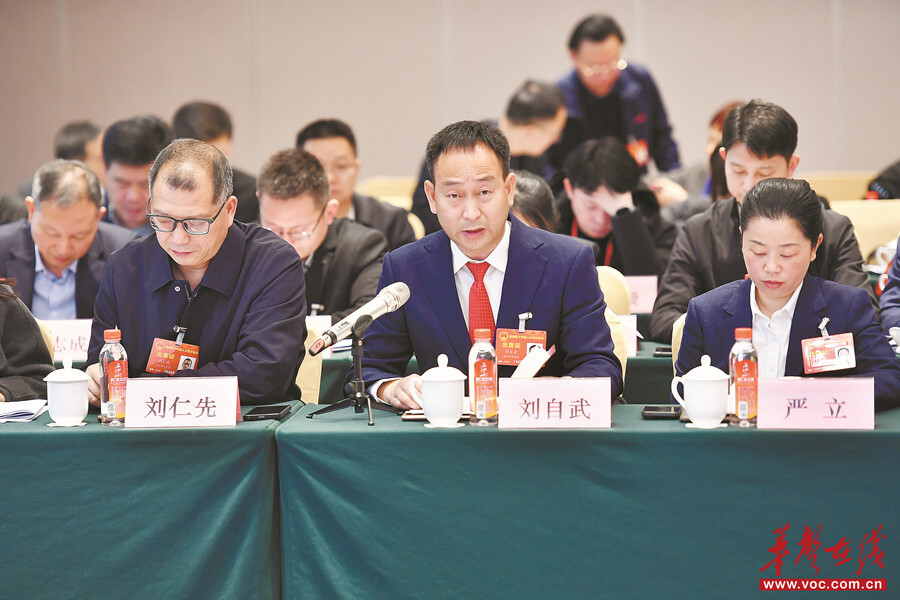 2月4日,益阳市代表团刘自武代表就提升洞庭湖区域应急救援能力建言。