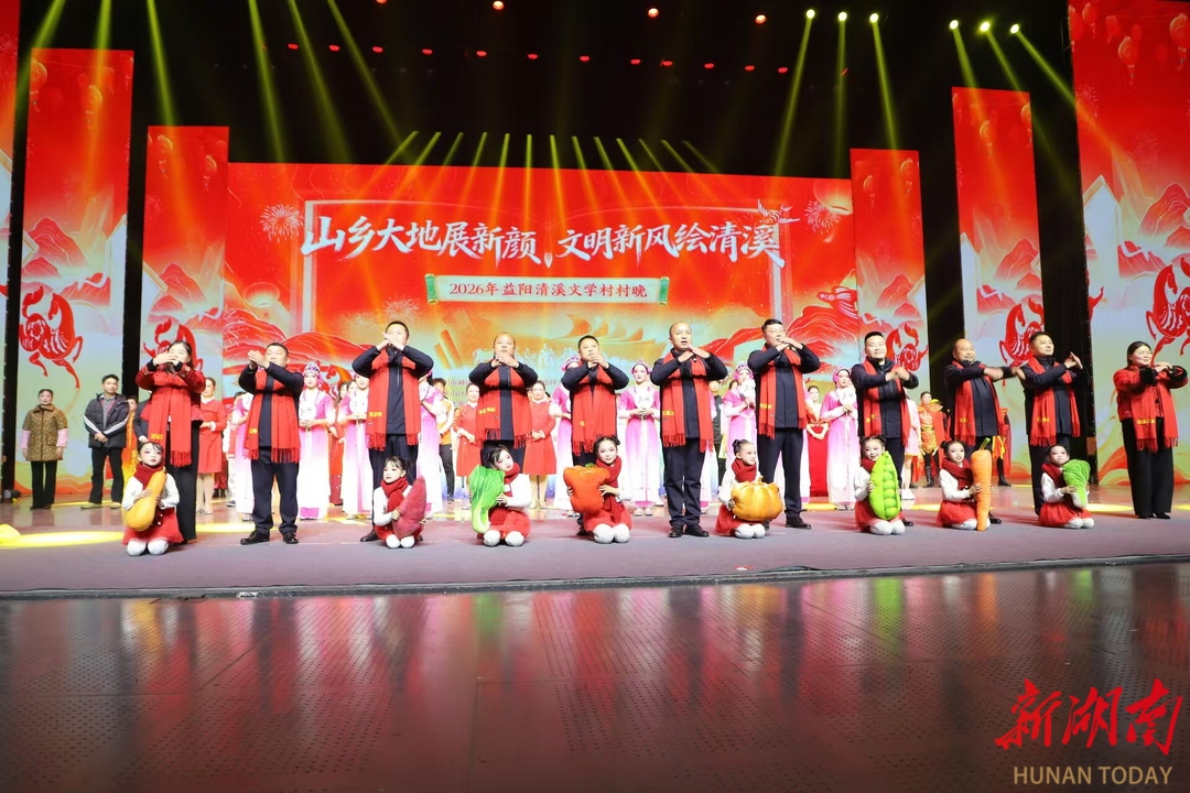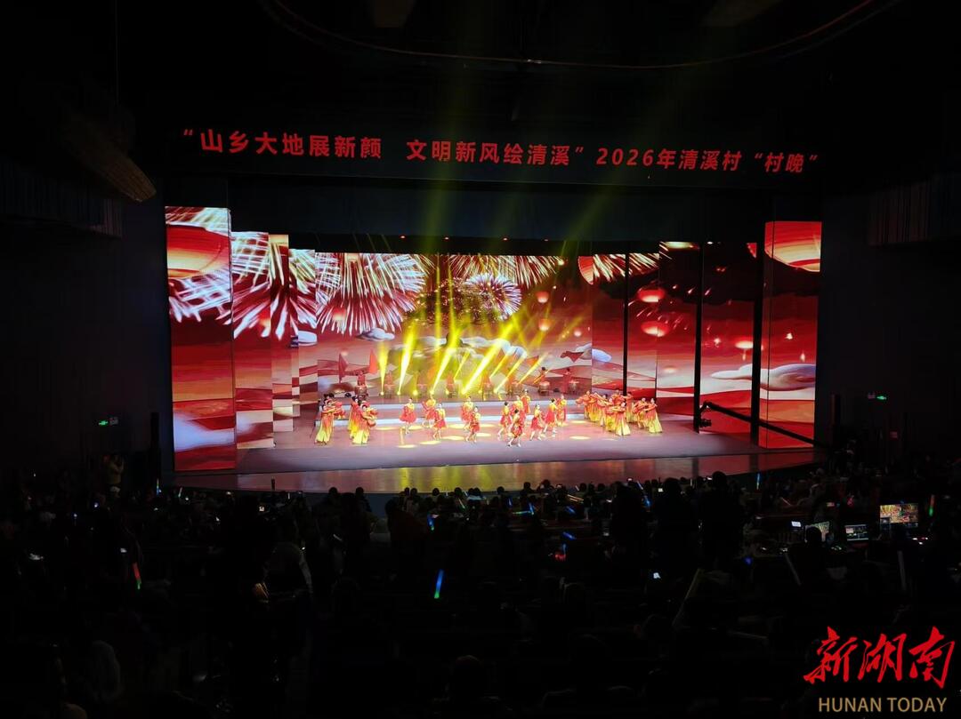 临近春节,年味愈浓。2月6日晚,益阳市赫山区谢林港镇清溪村张灯结彩。清溪剧院里,主题为“山乡大地展新颜,文明新风绘清溪”的“村晚”上演,现场座无虚席。