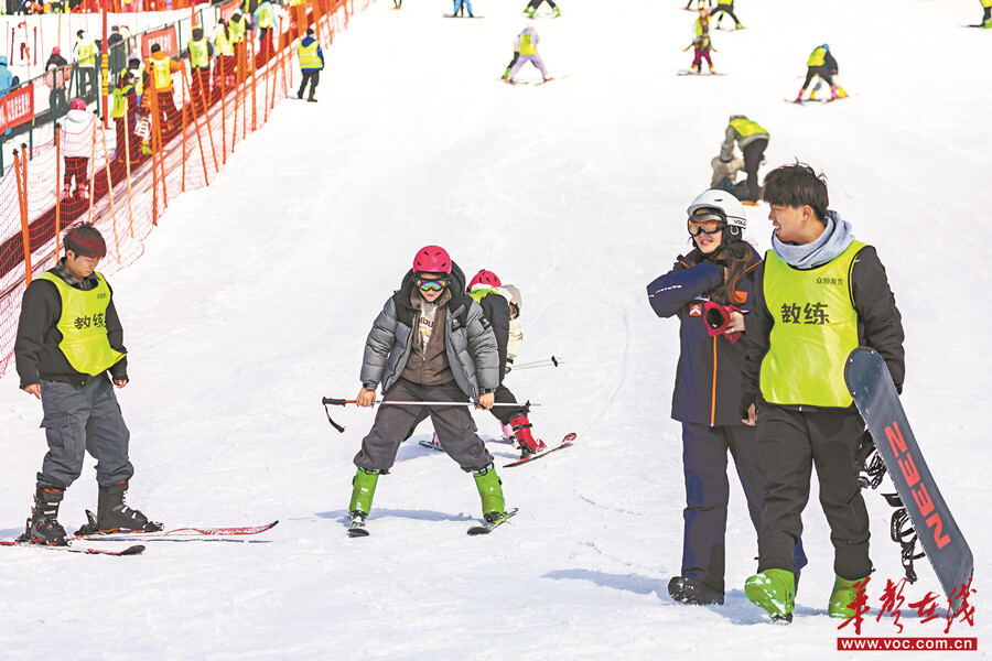 2月8日,游客在张家界七星山滑雪场体验滑雪。当地依托独特的高山资源发展冰雪旅游,成为冬季消费新热点。