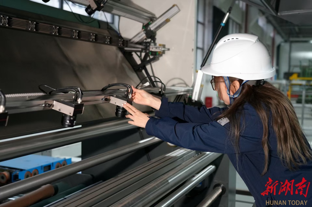 中南智能长沙长泰机器人有限公司的生产车间里,机械臂精准运转,机器轰鸣声中,郭东妮正俯身调试一台智能验布设备。这位1995年出生的副总工程师,举手投足间透着超越年龄的沉稳。