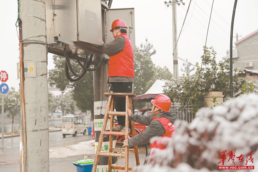 2月9日,共产党员服务队队员在检查陈市1号台区配变设备。当天,石门县迎来降雪天气,国网石门县供电公司宝峰供电所“电骡子”共产党员服务队冒雪巡视10千伏供电线路,全力保障电网安全稳定运行。