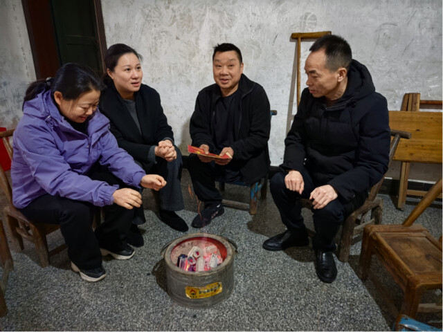 赖栩栩笑着招呼大家落座,女儿蒋晗琳连忙端来热茶。屋外冷雨纷纷,屋内却暖意融融。